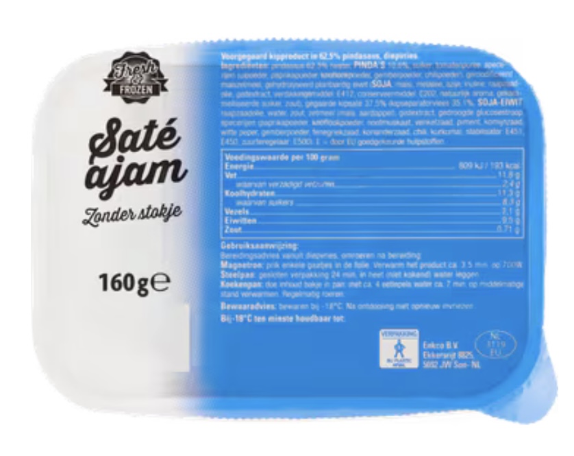 Fresh&Frozen saté ajam zonder stokje bakje 160gr aantal
