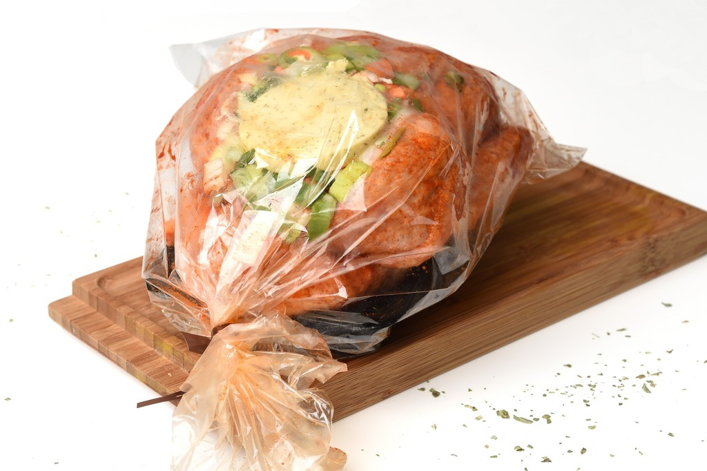 Kip in braadzak met spek omhuld en groenten en kruidenboter 1200 gr aantal